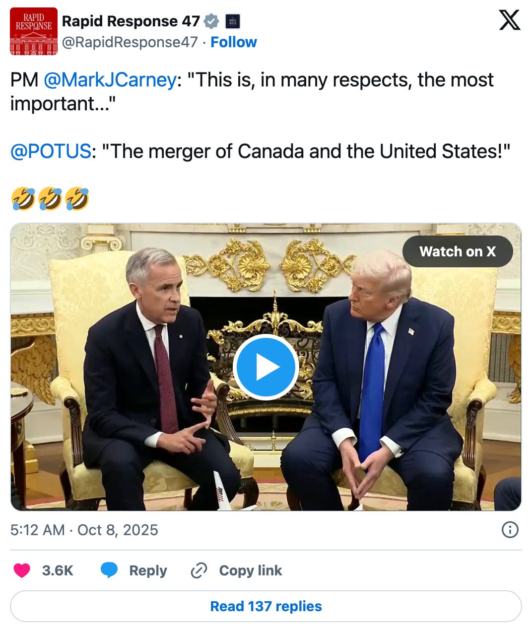 Canada’s Prime Minister Mark Carney is visiting the White House to discuss trade deals, and before he got carried away, Trump reminded him why he was visiting.