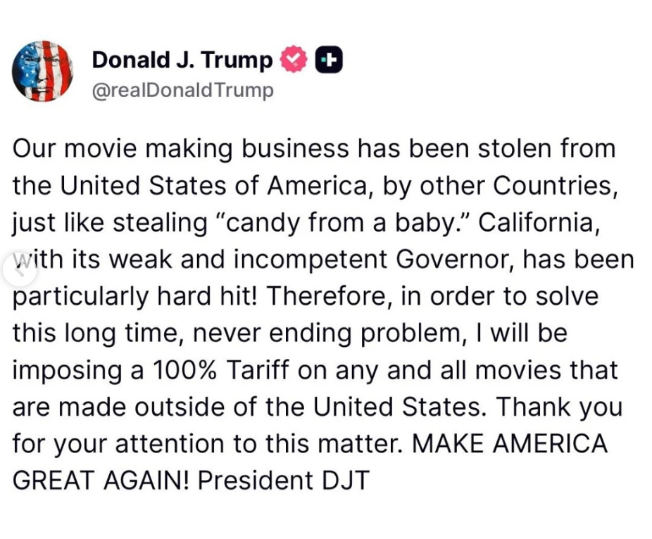 As Trump looks down the barrel of another report on higher numbers of unemployment, the tariffs will bring back Hollywood jobs.